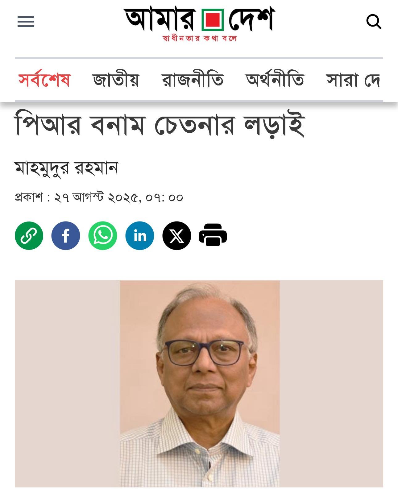 Now, let’s discuss PR. First, let’s try to understand Germany’s system. There, voters cast two votes: one for 299 local candidates, who are elected directly as in the UK, and a second vote for a party. Through the PR system, an additional 299 representatives are elected based on pre-determined party lists. For example, if a party has 10 candidates elected directly (out of the 299 local seats) but deserves 15 seats based on the PR vote share, the party will receive an additional 5 seats from their pre-set list (from the 299 PR seats). Often, important party figures contest direct elections while also being included in the PR list to ensure a seat in the German parliament, the Bundestag, even if they lose locally. The system is undoubtedly complex. Moreover, if a party receives less than 5% of the vote, it will not get any additional seats. I leave it to the readers to consider how many parties in Bangladesh could secure more than 5% of the vote. I believe it would be unwise to experiment with such a complex system in the upcoming elections with such little time. If all parties agree, decisions regarding a mixed PR system could be made for future elections, subject to drafting a new constitution or amending the existing one. Overall, the mixed PR system, though complex, seems to me a more democratic electoral system. My expectation is that no party takes a reckless decision like boycotting the elections over demands for the PR system, thereby obstructing the democratic transition. We must realize that the Indian deep state’s primary goal is to oust the Yunus government, and its secondary goal is to create such chaos in Bangladesh that a pro-India government, as in the past, can come to power in Dhaka. Through a free and acceptable election in February, we can collectively thwart our hegemonic neighbor’s malicious attempts. I hope all political parties in the country will realize this grave responsibility. In the past, wrong decisions by political parties and the ambitions of certain individuals have repeatedly struck at our sovereignty.